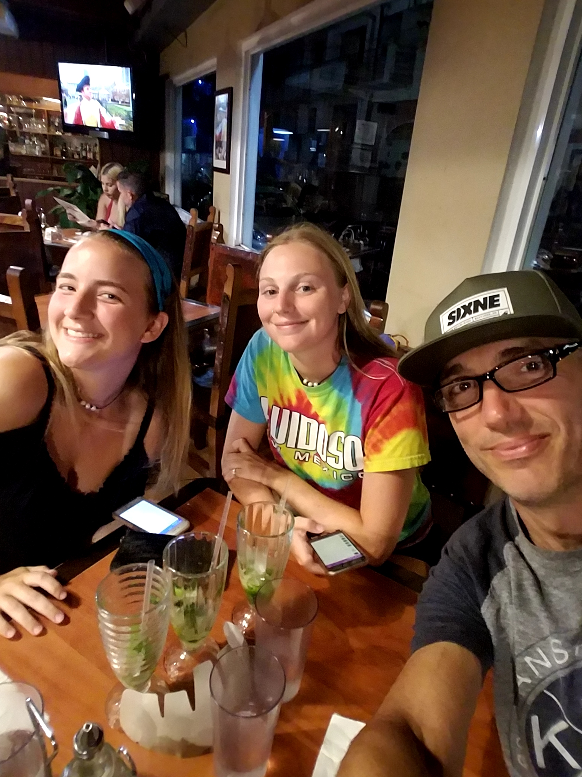 Day 1 (Friday). After a 6-mile run and a quick swim, I woke the girls with breakfast. I made sure to take many pics for Jamie’s mom so she would feel like she was a part of the experience. So, every morning I would send Stacie a text and a photo of us eating breakfast and a quick note. I have never had a lengthy conversation with her, so this was interesting. It is another way to make a friend. Back to day one. I generally use this day to get the lay of the land. Seeing how this was my 4th time in PR I figured I would give the girls an idea as to where we are and how to get around. The beach and the pool are the most important:) We walked 2 miles into a trendy tourist area with some high-end shops and had lunch, of course, getting the girls to walk back would have been a miracle. The girls decided on taking an Uber. This is where we met Christian. He was very nice and gave us an idea where to go. Pinonés was the one city he told us where the locals go. I have been to Pinones before but did not spend much time there. For dinner we decided to adventure out of San Juan and through Pinonés and into Luíza. The best part of doing this is that you really get to experience the local culture and that means the majority of the population does not speak English. So, you better have a handle on the language.